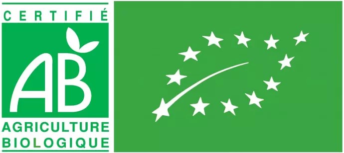 Le logo AB : il correspond au label français créé par le ministère de l’Agriculture et de l'Alimentation. Il atteste qu'un produit contient au moins 95 % d'ingrédients agricoles certifiés bio. Notez que ce logo français AB est facultatif.